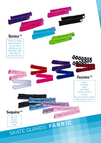 Terries™ PURPLE/PINK PINK/PURPLE BLUE/PINK GREEN/BLUE ORANGE/PINK PINK/BLUE BLACK/BLACK Fuzzies™ PINK PURPLE RED HOT PINK DARK PURPLE ROYAL BLACK-WHITE DOTS RED-BLACK DOTS Sequins™ BLACK BLUE SKATE GUARDS FA B R I C PURPLE PINK 36